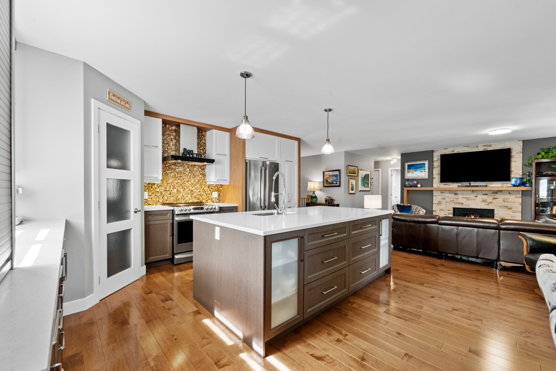 Découvrez le parfait équilibre entre élégance et fonctionnalité dans ce superbe bungalow contemporain situé dans un des secteurs les plus prisés de Drummondville. Dès l'entrée, vous serez séduit par l'aire ouverte lumineuse et le foyer au propane qui crée une ambiance feutrée instantanée. La cuisine, véritable coeur de la maison, dispose d'un immense îlot et d'un rangement généreux, idéal pour recevoir.