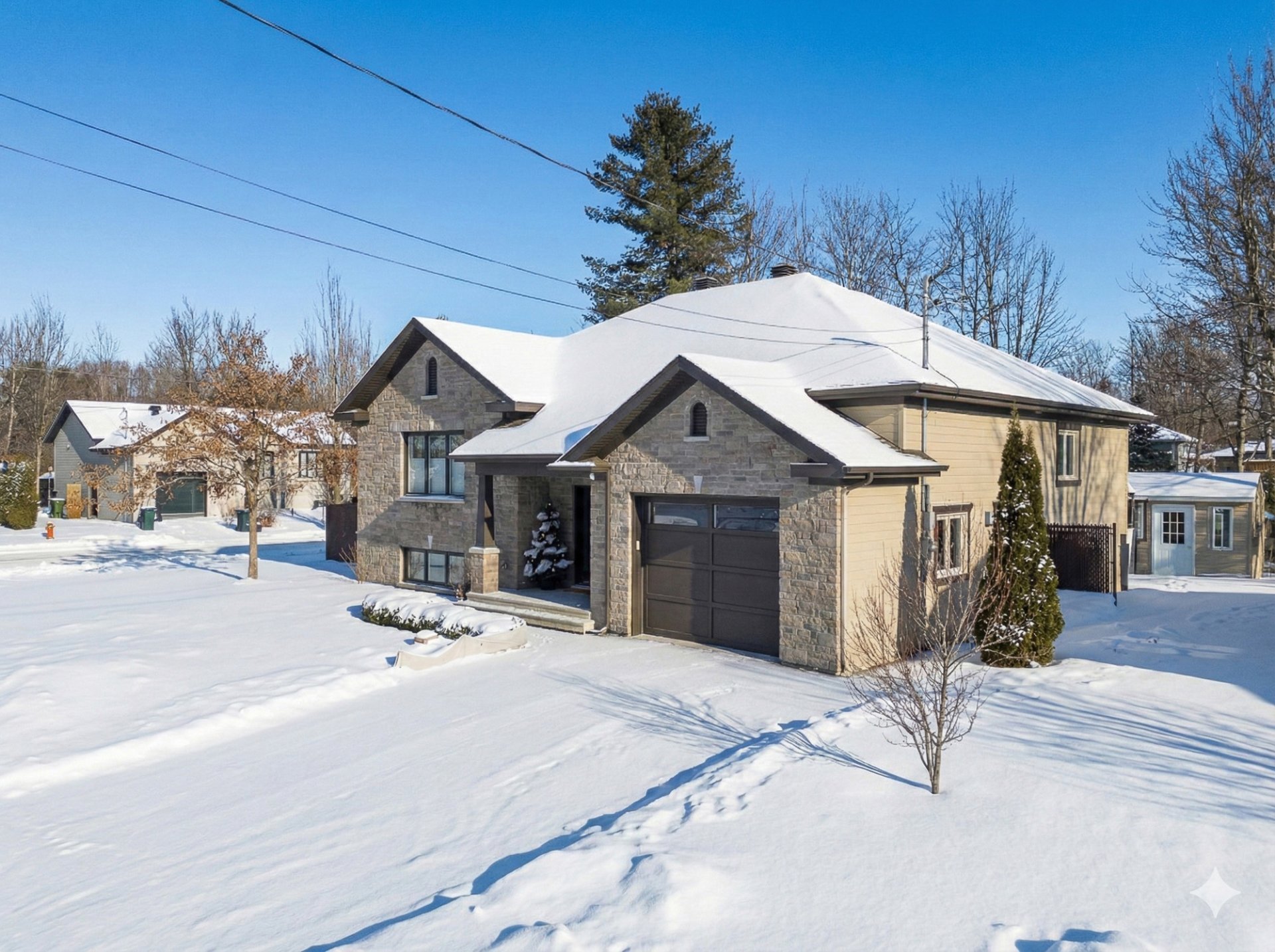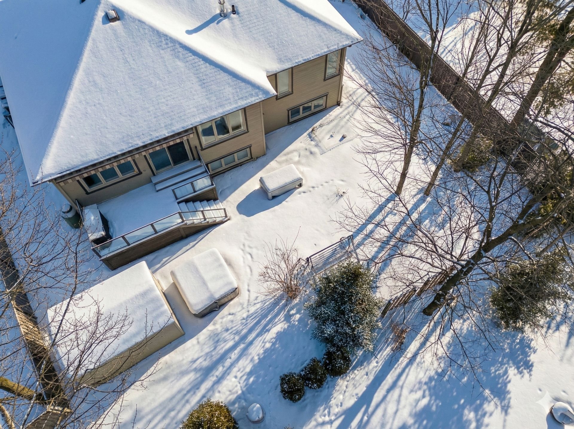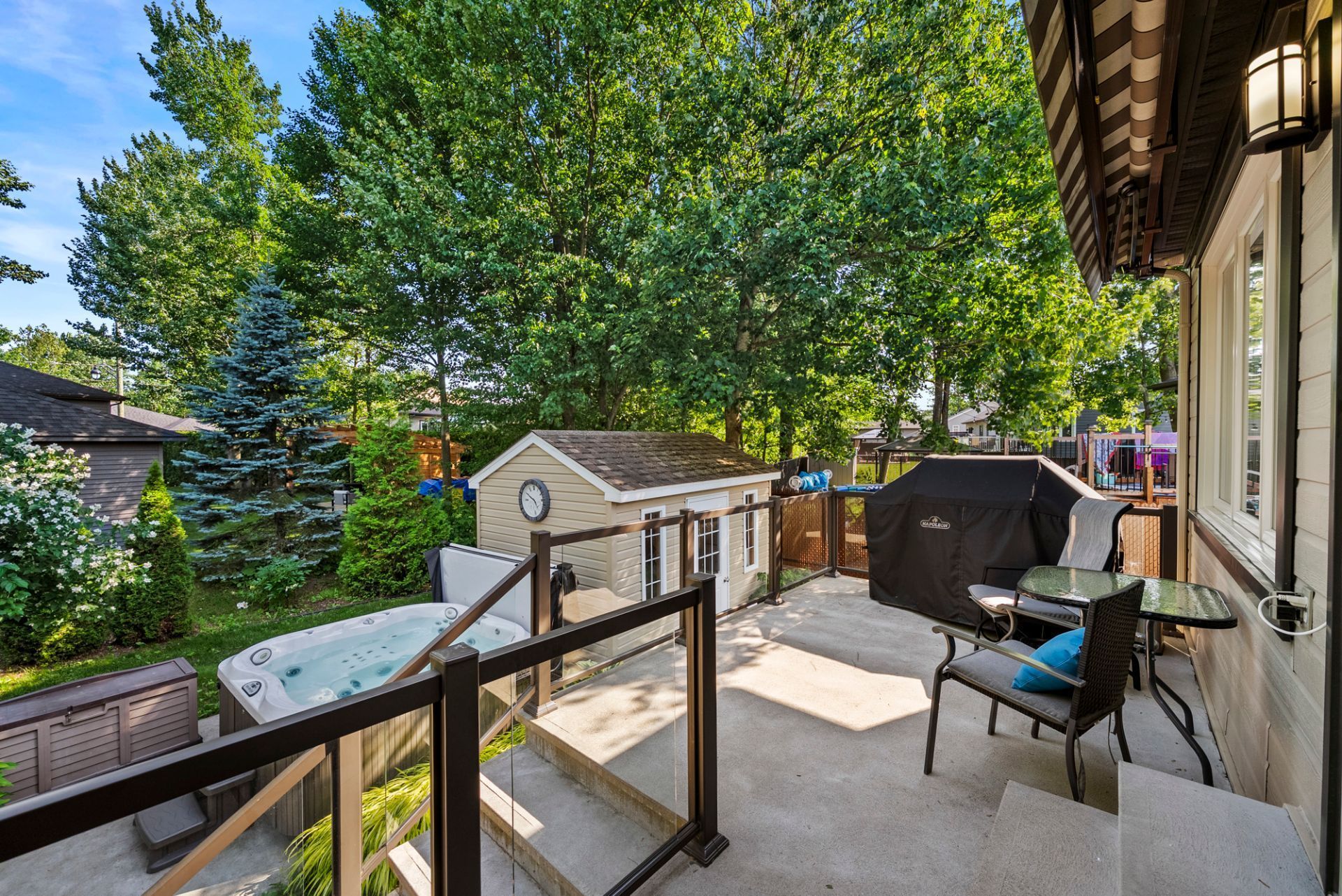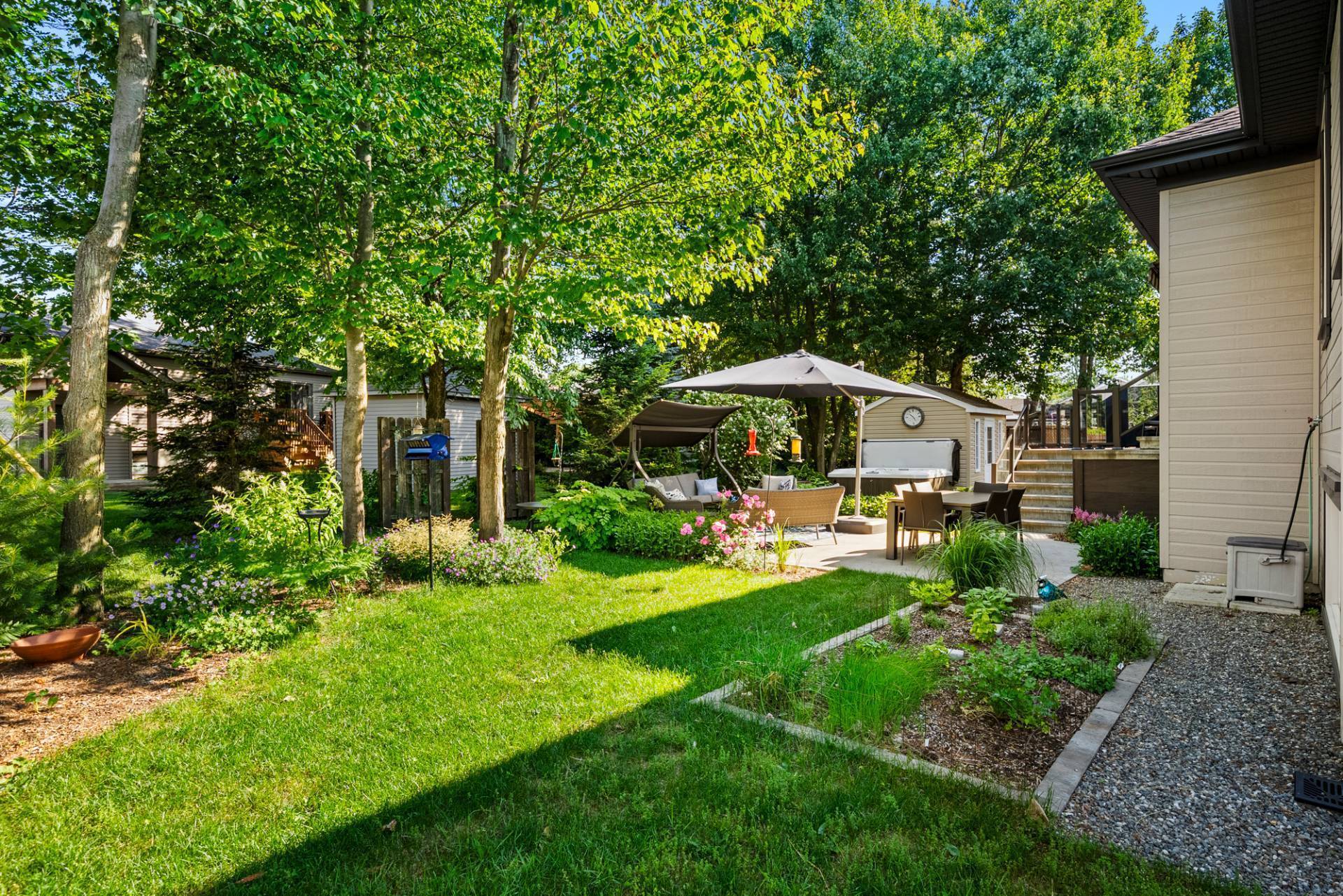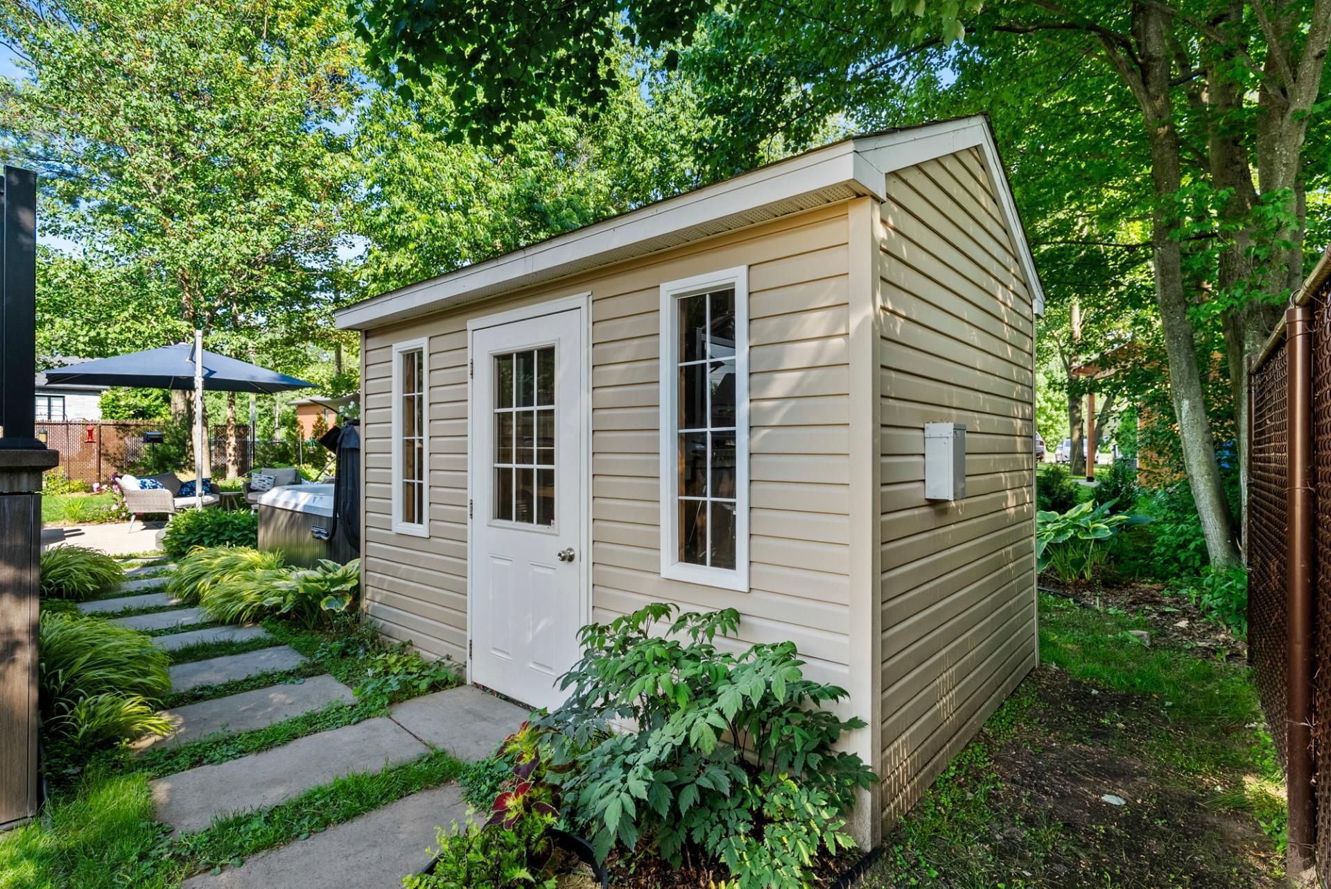 Exclus : Pôles et rideaux en tissus, spa (négociable), lave-vaisselle, tous les électroménagers, supports et systèmes de rangement du cabanon et du garage, tous les meubles et effets personnels des vendeurs.