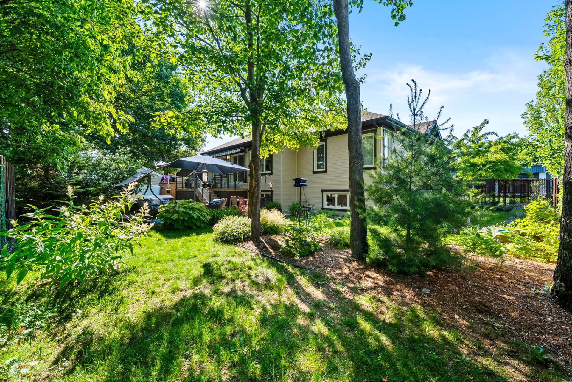 Avec ses 4 chambres spacieuses et ses 2 salles de bains complètes, cette propriété répond à tous les besoins d'une famille active. Profitez d'un confort optimal en toute saison grâce au système central de chauffage et climatisation. L'extérieur n'est pas en reste: une cour intime soigneusement paysagée avec terrasse en béton et remise. Emplacement stratégique offrant un accès ultra-rapide aux grands axes tout en préservant le calme du quartier. Une visite suffit pour tomber sous le charme!