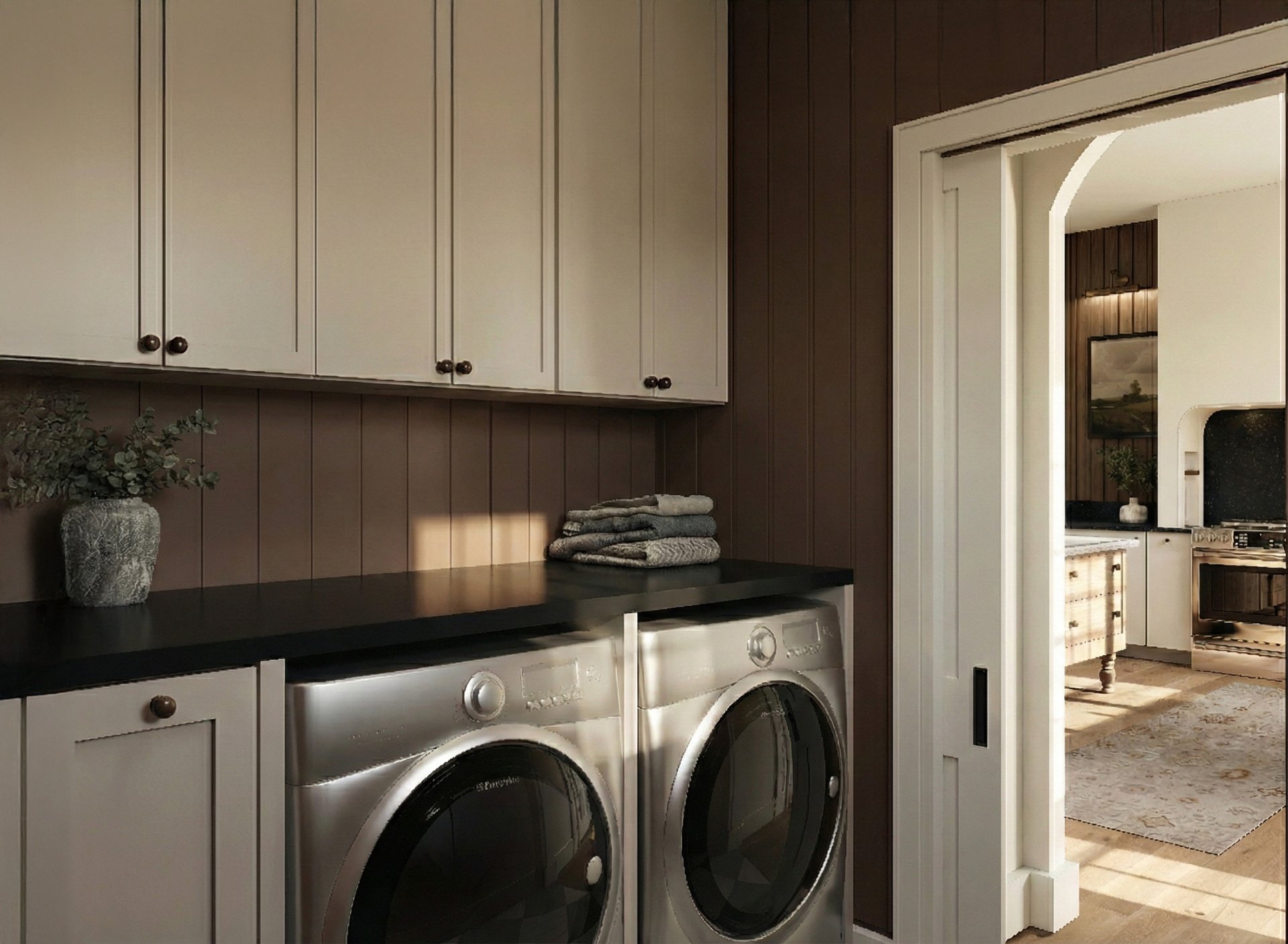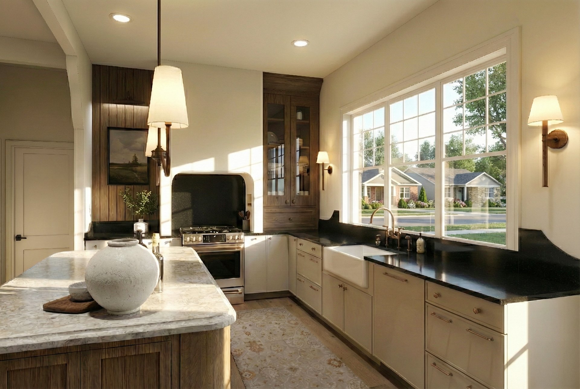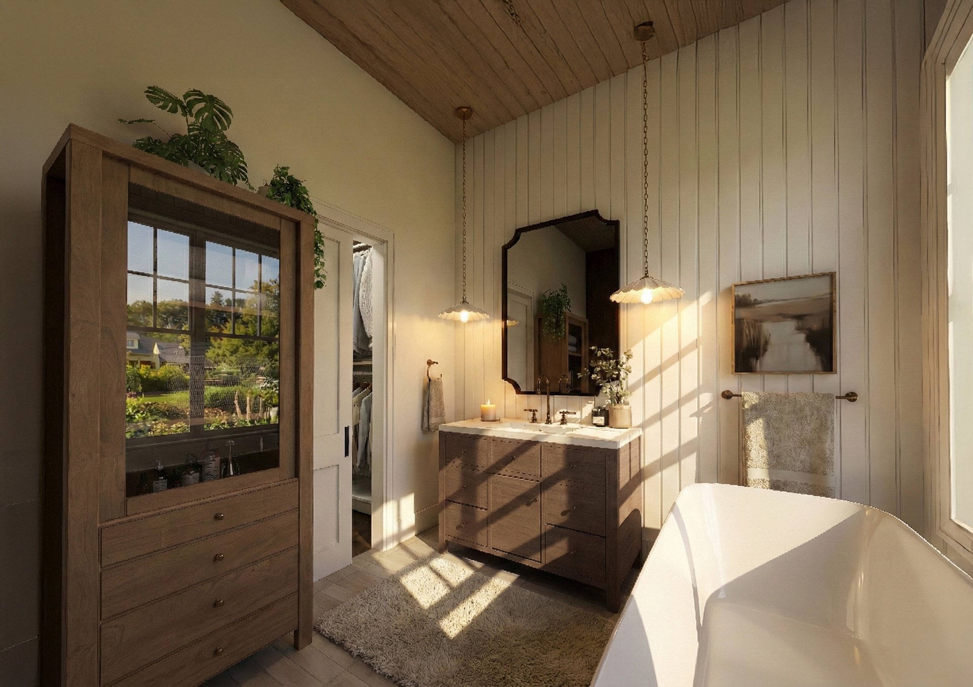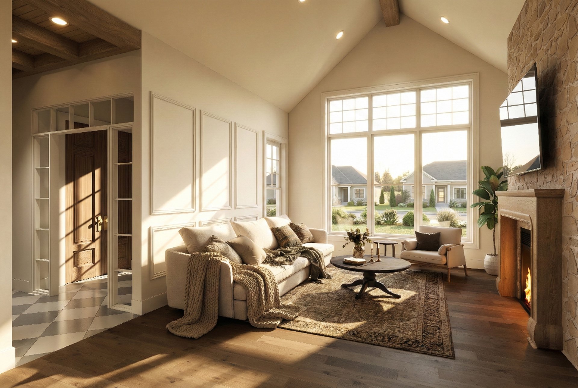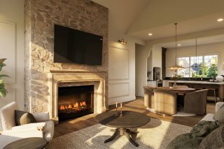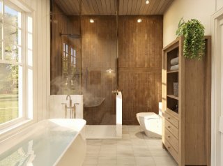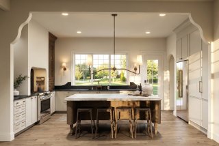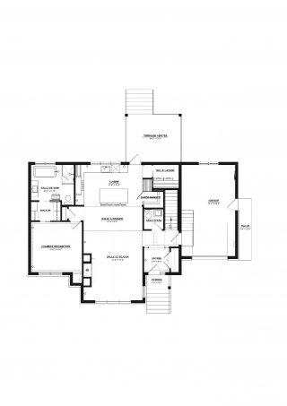 Le rez-de-chaussée, baigné de lumière naturelle grâce à de plafonds de 10 pieds s'ouvrant sur un spectaculaire plafond cathédrale au salon, se distingue par ses planchers en bois d'ingénierie et un magnifique foyer au propane encastré dans une structure de maçonnerie. La cuisine de chef, véritable chef-d'oeuvre fonctionnel, dispose de comptoirs et d'un dosseret en quartz noble, de superbes armoires bicolores en chêne et polyester, ainsi que d'un lave-vaisselle parfaitement intégré. La suite principale, conçue comme un hôtel de luxe, propose une chambre spacieuse, un vaste walk-in et une salle de bain avec plafond en bois comprenant une douche à l'italienne en céramique, une baignoire autoportante moderne et une vanité double en bois texturé avec comptoir en quartz.